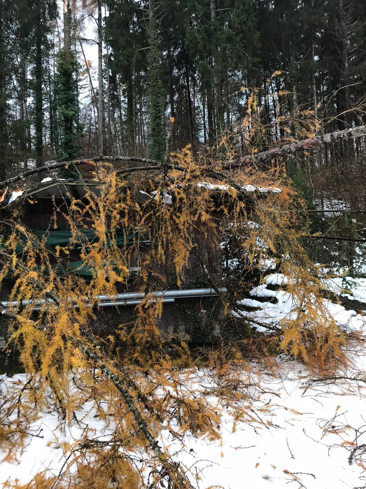 Auch der Parkplatz des Vereinsgeländes wurde durch die Schneelast und den daraus resultierenden Holzschlag stark in Mitleidenschaft gezogen.